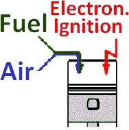 In the vacuum intake petrol injection and the side combustion chamber method (Diesel engine), the fuel is injected as a fine spray, into the intake-air. In the case of the direct injection, the fuel is sprayed through a nozzle, directly into the combustion chamber, this method is found in all Diesel- and direct petrol injection engines. This is why it's called 'internal mixture formation', as opposed to the 'external mixture formation' in vacuum intake injection engines. 06/10