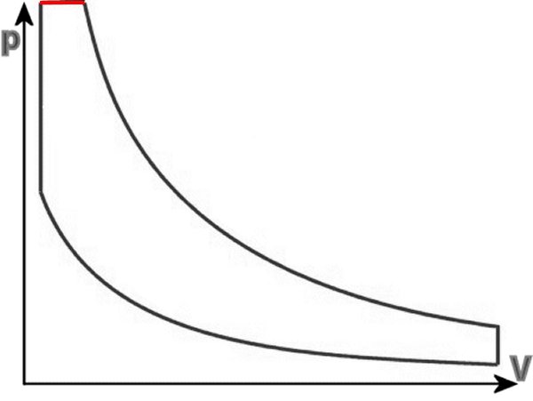 Man stellt sich vor, dass der Verbrennungsdruck sich am Anfang so langsam entwickelt, dass er von der Volumenänderung durch den nach UT