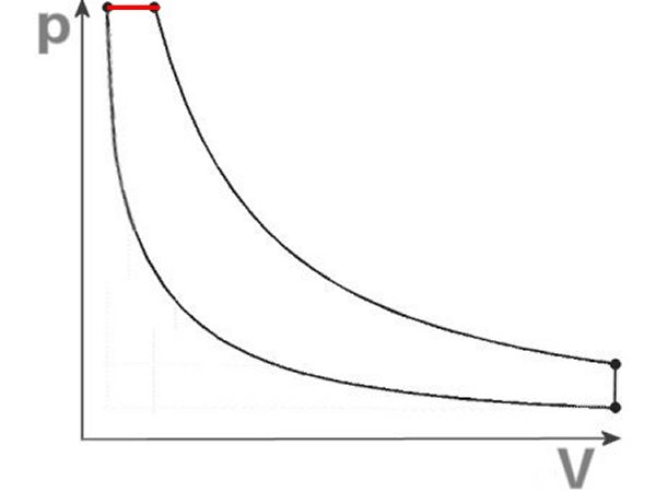 So und jetzt stellen Sie sich bitte vor, diese Kolbenbewegung wäre unendlich langsam verlaufen. Es hätte also keine Druckerhöhung (isobare