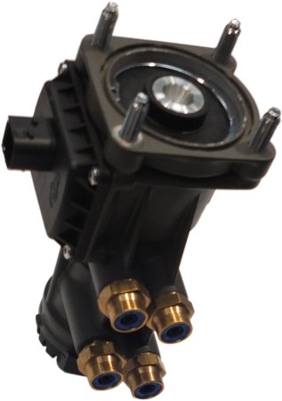 Hier sind die vier Anschlüsse bezeichnet. Vorne kommen die Versorgungsleitungen von den beiden Fußbremskreisen (1. Ziffer: 1) an, hinten gehen sie zu den beiden Achsen (Erste Ziffer: 2). Ganz unten die Entlüftung