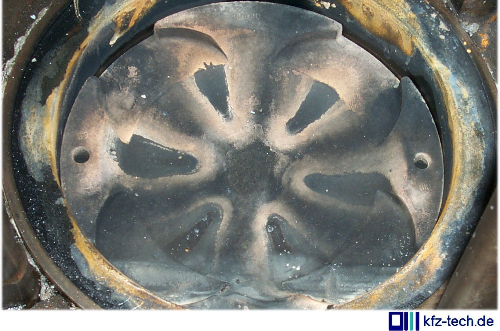 Was also tun? Man schafft den Nebenbrennraum und fängt dort die erste Wucht der Verbrennung ab. Der Druck gelangt dann über Bohrungen in den Hauptbrennraum. Man darf nicht vergessen, dass