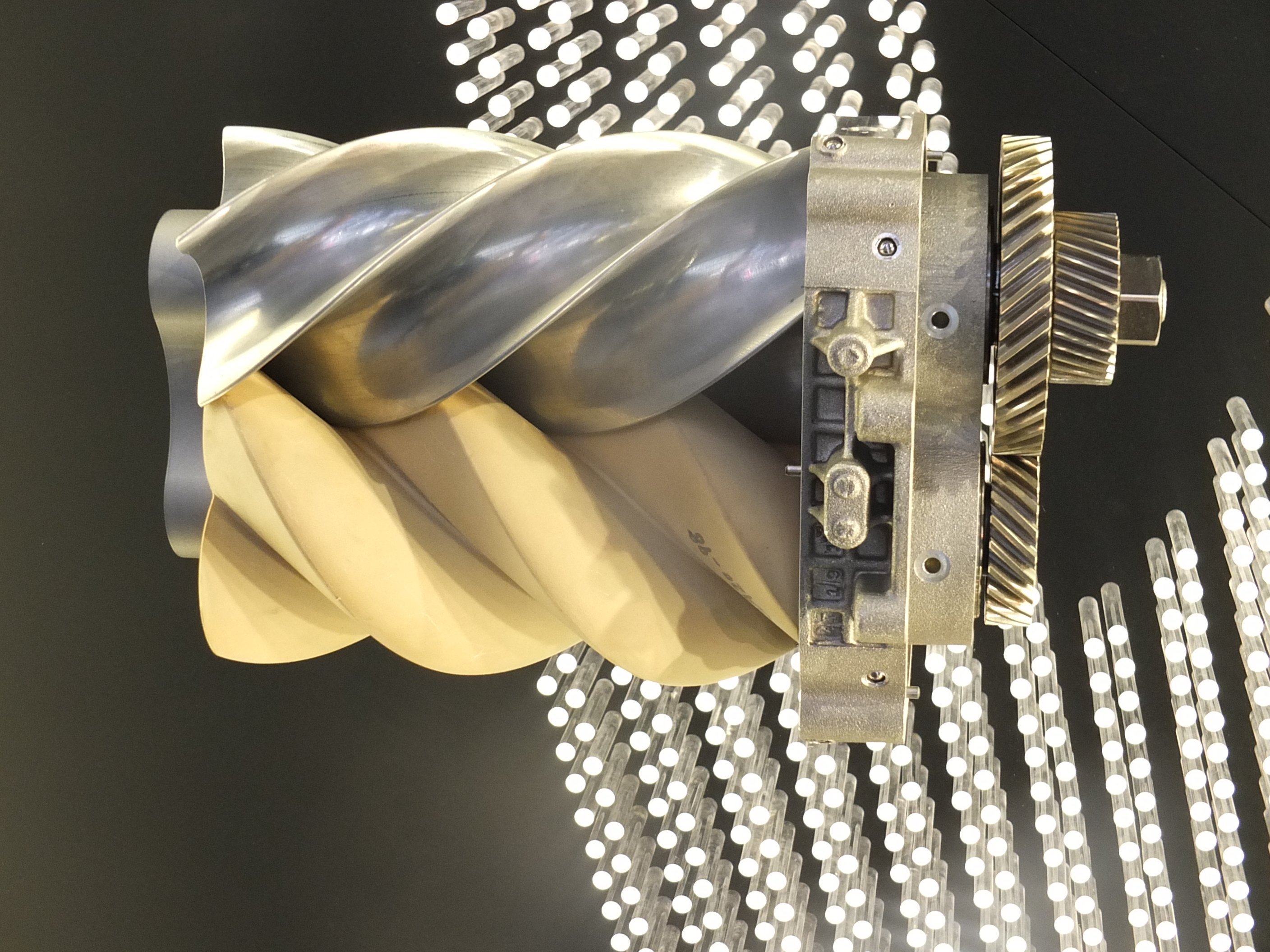 ineinandergreifenden Wellen mit je zwei oder drei Flügeln bestehend. Die Flügel verliefen früher gerade über die Welle, winden sich allerdings jetzt um sie herum, als eine Art Weiterentwicklung zum