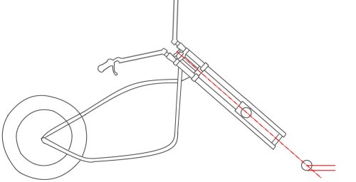 helfen. Dazu schauen wir uns oben und unten dieses krasse Beispiel an: An einem Zweirad mit zweifellos sehr viel Nachlaufwinkel wird die Lenkstange um 90° gedreht.