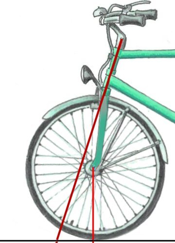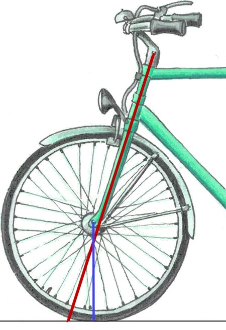 zusammenkommen. Und jetzt erklärt sich, warum man mit einem normalen Fahrrad freihändig fahren kann und der Lenker nicht schlagartig zur Seite klappt, wenn man ihn loslässt.