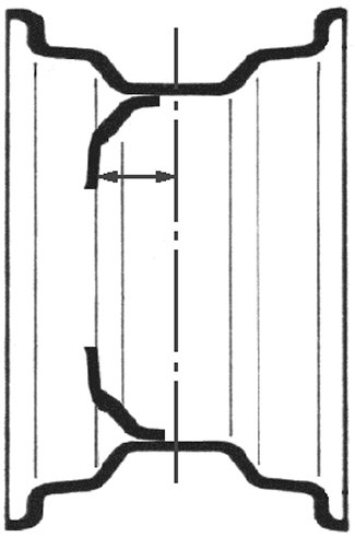 der Anlagefläche der Felgenschüssel zur Radnabe hin bezeichnet. Positiv ist sie, wenn diese Anlagefläche weiter außen liegt als die Felgenmitte, wird also immer kleiner, je weiter sie den Reifen nach außen rückt und