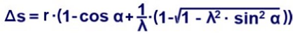 Hier wird bei gegebenem Kurbelwinkel der Abstand des Kolbens vom oberen Totpunkt errechnet nach der Näherungsformel berechnet. Die automatische Berechnung ermöglicht einen kompletten über alle Zwischenwerte einer Umdrehung der Kurbelwelle.