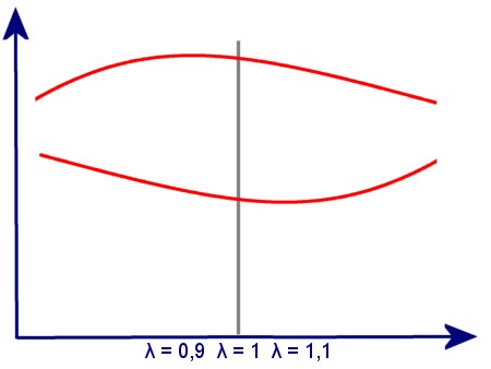 Wir beginnen mit einem anderen Diagramm, dass Ihnen vielleicht bekannt vorkommt. Es zeigt zwei Kurven, die über verschiedenen Lambdawerten aufgetragen sind. Dabei steht die obere Kurve für die Leistung bzw.
