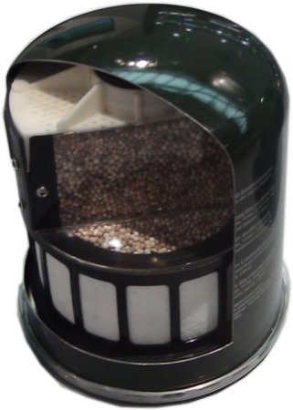 Granulat nimmt im Prinzip alles Wasser beim Durchlauf der Luft in das System hinein auf. Ein Teil dieser getrockneten Luft wird in einen Regenerationsbehälter von 4 bis 9 Liter Volumen geleitet.
