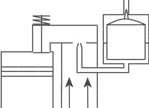 jetzt fertige Luft-Kraftstoff-Gemisch geht durch die Leitung nach rechts zum