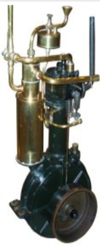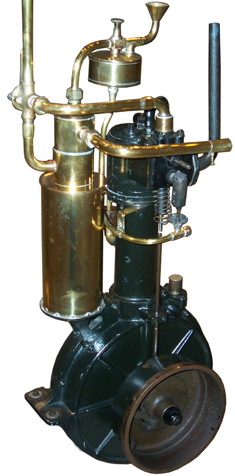 Was Sie hier kupferfarben links neben dem eigentlichen Zylinder sehen, ist der von Maybach konstruierte Schwimmervergaser von 1886.