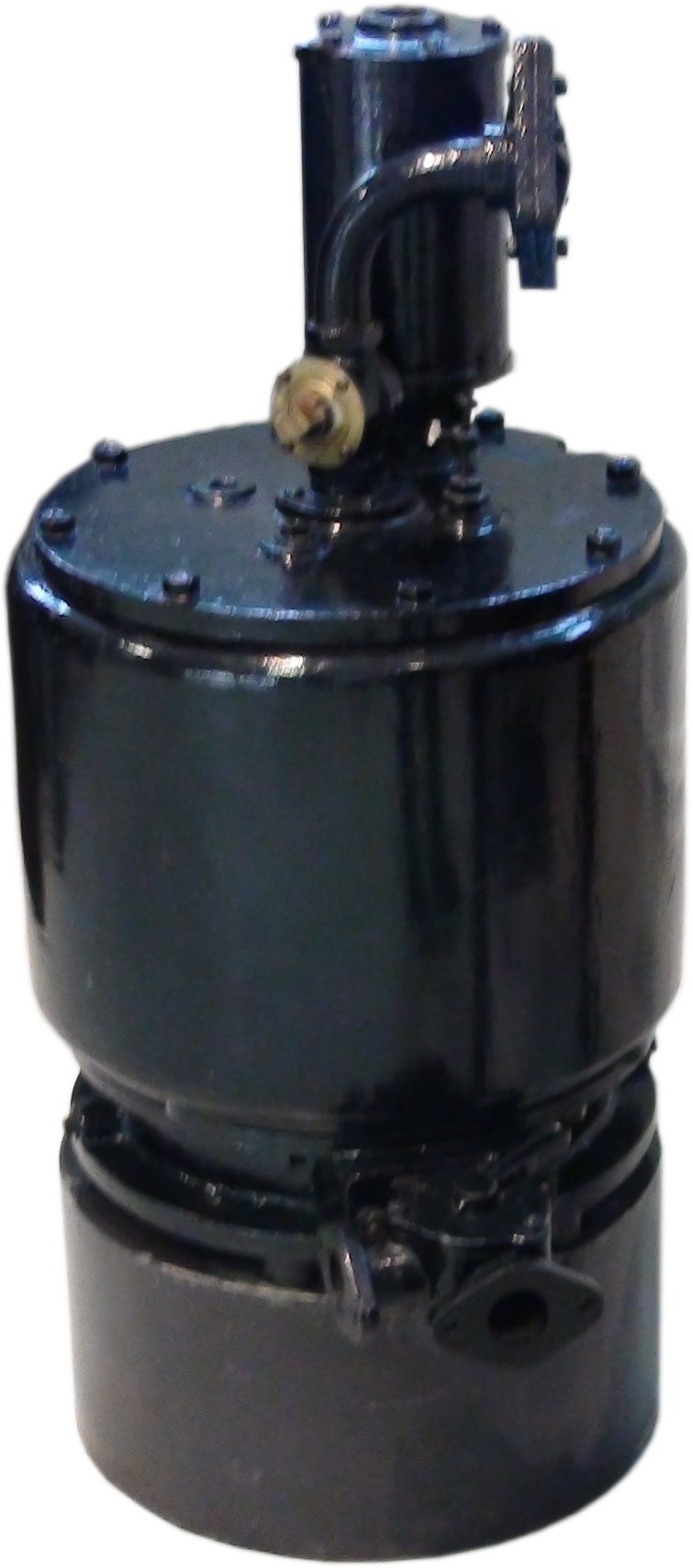 durch einen Tank mit Handpumpe mahnt. Die dem Vergaser zugeführte Luft wird geregelt und mündet unten am Boden des Behälters,
