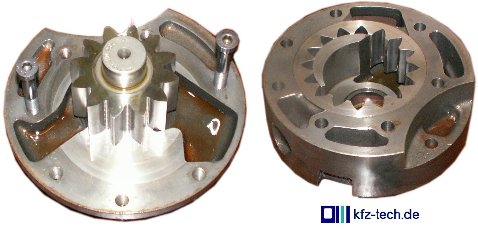 Besonders wichtig hier die Ölpumpe, meist mit entsprechender Filterung. Das Öl kann im Betrieb sehr warm werden und hat deshalb Wechselintervalle, allerdings etwas längere als der Motor.