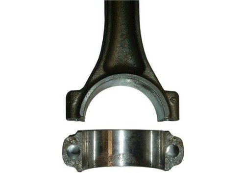 Das große Pleuelauge ist bei Gleitlagern immer und bei Wälzlagern zunehmend geteilt. In neuerer Zeit werden Pleuelstangen auch einteilig hergestellt und dann gezielt gebrochen (Bild unten). Damit ist ohne besondere