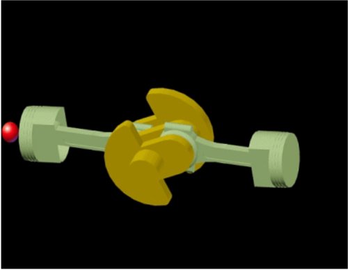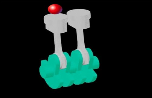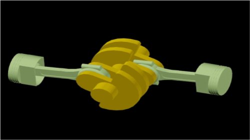 auch die durch die Pleuelstellung verursachten Massenkräfte zweiter Ordnung vermieden. So kann auf die im Bild unten gezeigten Gegengewichte weitestgehend verzichtet werden.