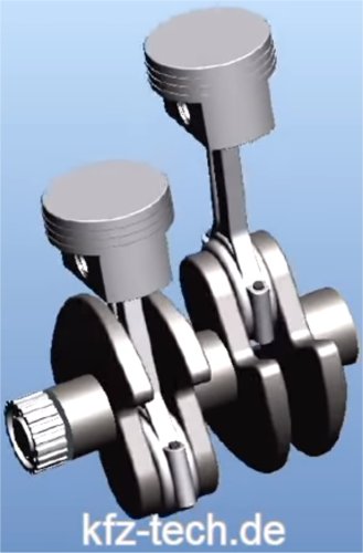 Die vertikalen Bewegungen des Motors sind ausgeglichen. Jedoch die jeweils unterschiedliche Pleuelauslenkung erzeugt Drehschwingungen, die z.B. durch Ausgleichswellen