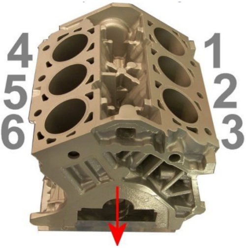 Zylindernummerierung hält. Die Kurbelwelle ist fast immer dreifach, möglicherweise auch fünffach gelagert. Eine absolute Ausnahme ist die vierfache Lagerung