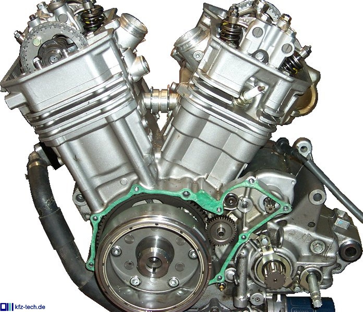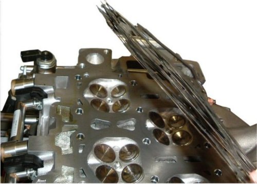 Die Motorsteuerung ist wegen des höheren Drehvermögens von Motorradmotoren kompliziert. Es muss je eine obenliegende Nockenwelle je Zylinder angesteuert werden.