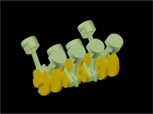 Durch fünf Kurbelwellenkröpfungen mit unterschiedlichen Winkeln führen die einzelnen Kolben ihre Hübe zu unterschiedlichen Zeiten aus. Es gibt heute keinen