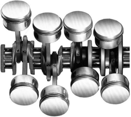 Gehen Sie also davon aus, dass alle Bilder auf dieser Seite einen noch relativ einfachen V-8 zeigen. Beide Pleuel greifen auf einen Zapfen. Wegen bestimmter Platzverhältnisse im Motorraum gibt es auch