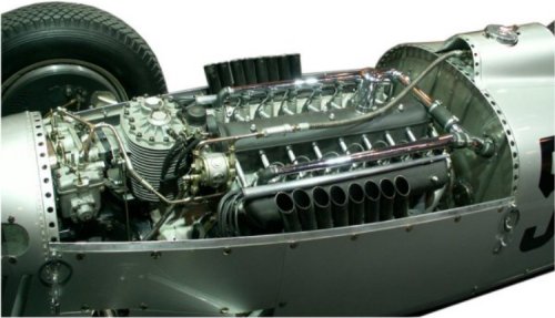 Es gibt/gab sie in zwei verschiedenen Ausführungen, einmal als eine Art doppelter V8 wie im Bild oben bei Auto Union oder auch bei Cadillac, und dann in moderner Form bei Bugatti. Hier sind im Prinzip zwei VR-8