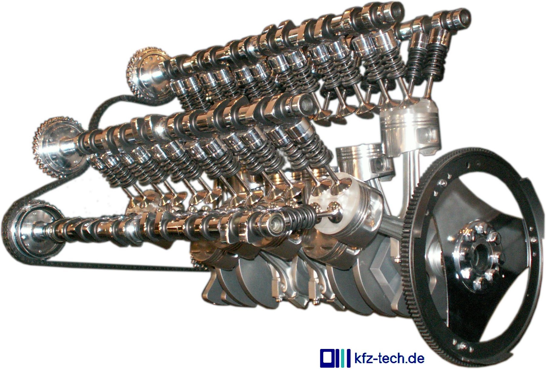 oder voneinander weg. Die Kurbelwelle ist meist siebenfach gelagert. Ein Beispiel für die Zündfolge: 1-6-2-4-3-5.