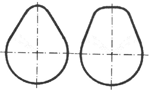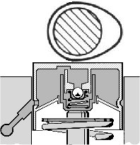 Vielleicht wird jetzt etwas klarer, warum der Durchmesser der Tassenstößel so groß sein muss. Bei Drehung des Nockens im Uhrzeigersinn beginnt die Berührungslinie quer zum Nocken zunächst ungefähr in der Mitte,