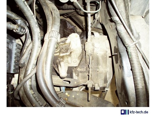 Vom Motorraum her sind weitere Arbeiten nötig. Auch hier müssen alle nötigen Steckverbindungen auseinander und der Starter abgebaut werden. Manchmal kompliziert sind Schaltgestänge bzw. Schaltseile (Bild 4).