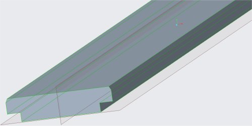 Wie macht man das in Creo? Wir können bisher nur spiegeln. Also eine Füllung mit 4,05 mm fertigmachen, in 1,775 mm (die Hälfte von 3,55 mm für eine Schwelle) eine Mittellinie und dann an dieser