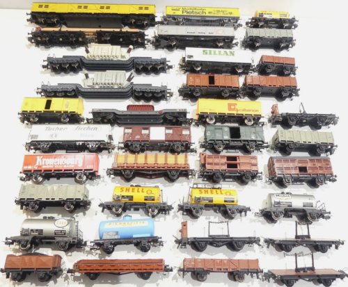 Da ist so ungefähr der Durchschnitt. Aber jetzt zwei erfolgreiche Beispiele: Oben sehen Sie ein Konvolut aus 12 Fahrzeugen und einem Stück Ladung. Nun gut, es fehlen eine Achse, am Klappdeckelwagen fünf