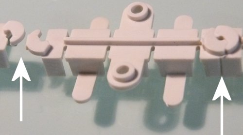 Hier sehen Sie, wie (filigran) die Strecken zusammengefügt werden. Links ist die Verbindung noch offen, rechts