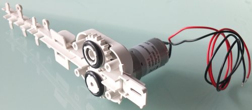 Die Kette fällt also auch in engen Kurvenradien nicht auseinander. Angetrieben wird sie von zwei Zahnrädern und einem massiven Motor, der durch das Getriebe noch schwerer wird. Wir müssen allerdings noch