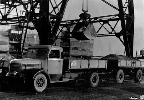 Nun gut, der oben abgebildete Kieslaster aus den fünfziger Jahren des vorigen Jahrhunderts hat offensichtlich kein Reserverad dabei (oder es ist hier nicht sichtbar). Da er aber in der damaligen