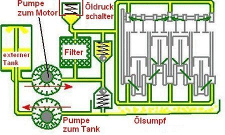 Das bedeutet, die eine der beiden sammelt das Motoröl aus dem Ölsumpf in einem separaten Behälter und die andere versorgt von dort wie gehabt die einzelnen Schmierstellen.