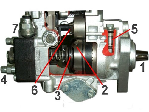 So wird z.B. der Verteilerkolben beim Vierzylinder des Golf Diesel durch die vier Rollen des Rollenrings bei einer Umdrehung vier Mal angehoben, wodurch er gemäß der Spritzfolge 1 3 4 2 die Einspritzdüsen der