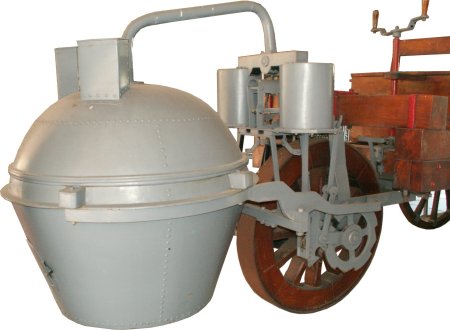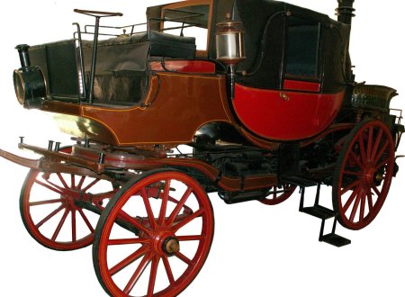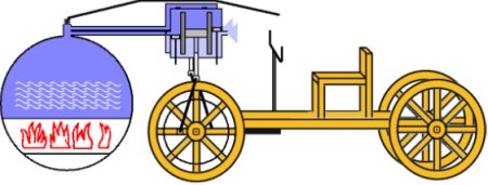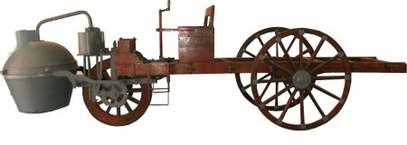 Joseph Cugnot's from the year 1765 shown here was probably one of the first steam-powered vehicles and is a good illustration of this.