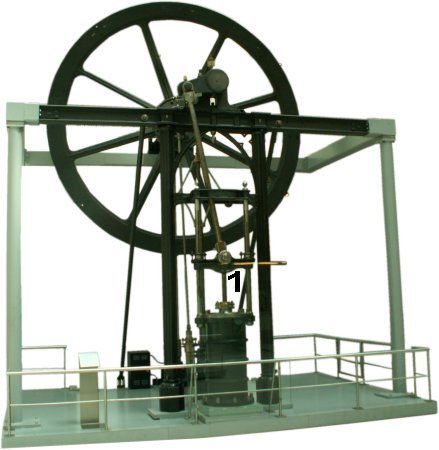 Mind you, this is a design that came into being just before the significant improvement of the steam engine that James Watt made famous. The spatial separation of combustion chamber and power transmission also