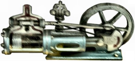 Below again a picture, which makes clear the principle of the transmission of the steam pressure on the flywheel, this time with a double-acting piston and in the middle the crosshead, which transfers the back and