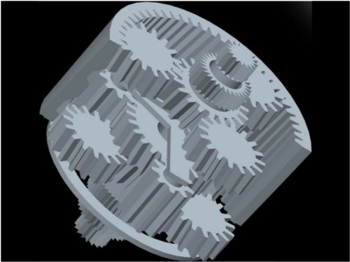 larger ring gear with internal teeth around it. In between, there are usually three or even four planetary gears with external teeth, which are in positive contact with both the sun gear and the ring gear.