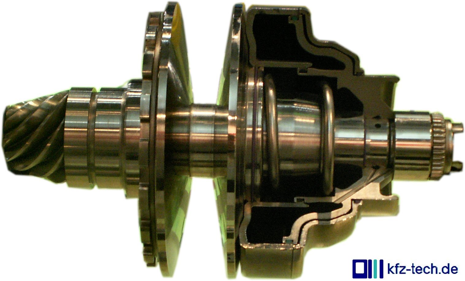 A CVT transmission can shift gears without steps and thus along the ideal traction line. Here, the force flow is essentially directed via two pulleys whose effective diameter can be changed. These used to be connected by