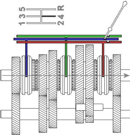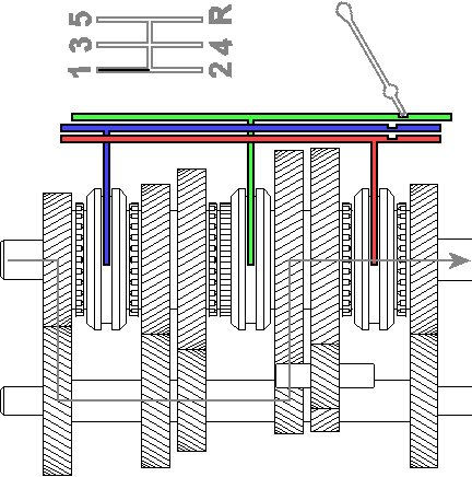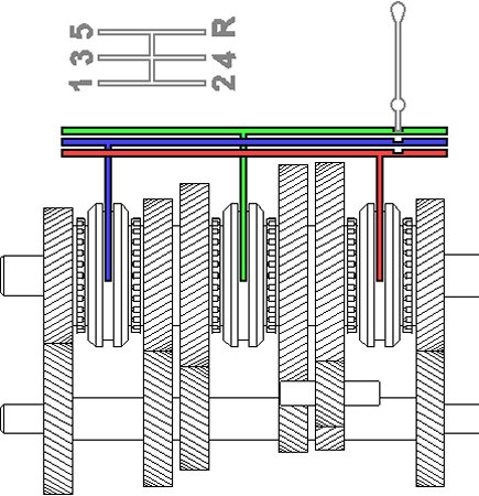 The question of how to prevent two gears from being engaged at the same time has still not been clarified. This is where the famous H-scheme comes into play. You can take it as you like with a car, it is almost always the