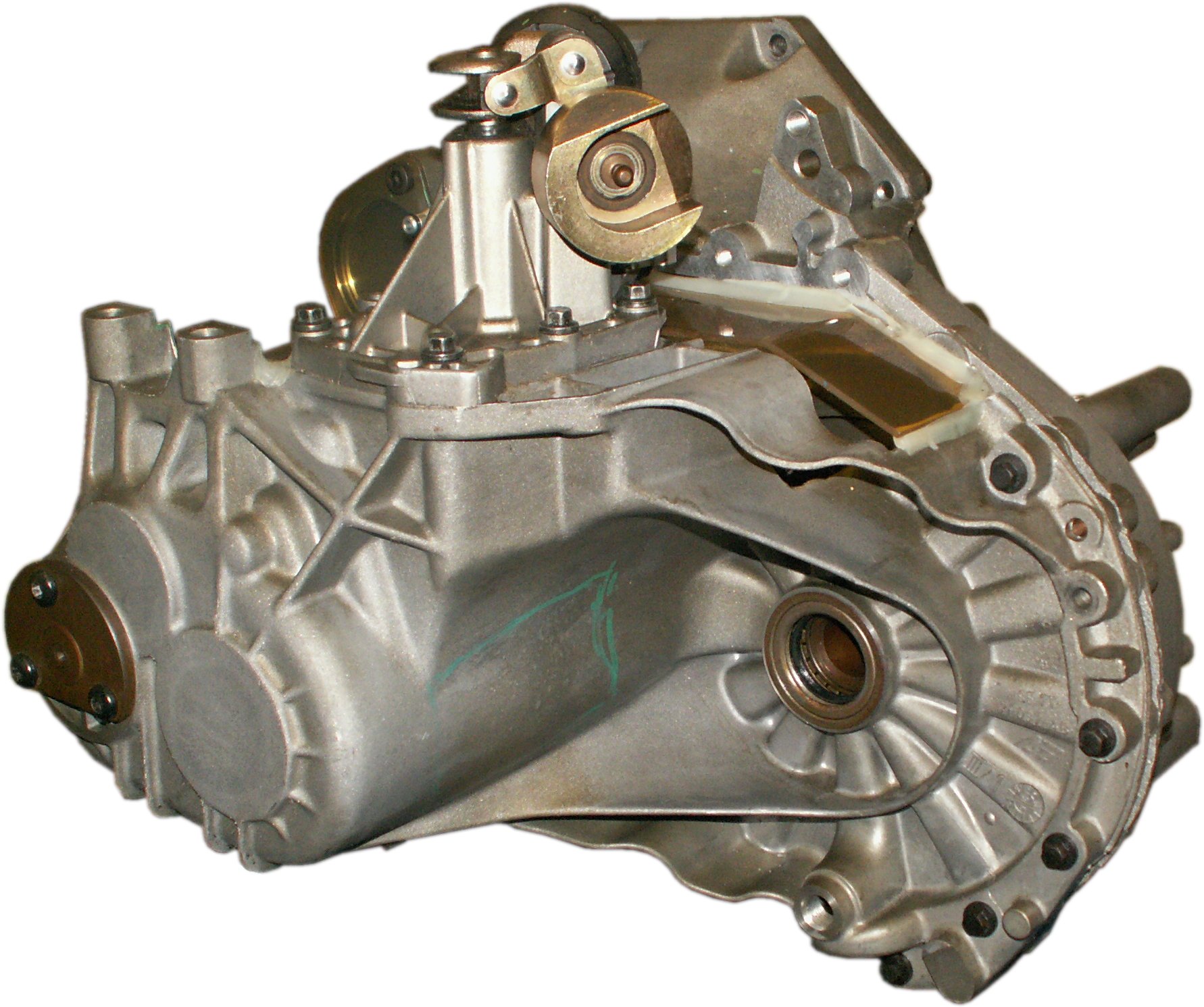 Here is another non-coaxial gearbox in a longitudinal configuration. Hopefully you can tell just by looking at it, it was designed with five gears right from the start. They're all lined up nicely one after the other. Another change