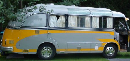 mentioning Kässbohrer and its self-supporting bus bodies. The S6 shown below, dating from 1955, could be carried by six workers.