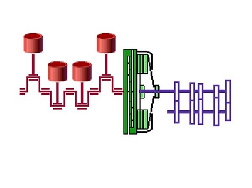 One group of components is usually connected to the crankshaft so that it cannot rotate, while another is connected to the transmission drive shaft so that it cannot rotate either.