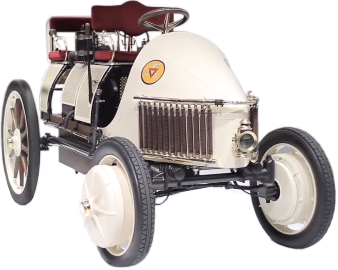 neventheless good sellable sensation. Celebrities scrambled to get such a car. The batteries proved so heavy and weak that they were later replaced by a gasoline-electric (hybrid) drive.