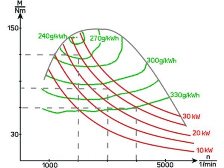 it is full throttle (or rather full load) and remaining in this operating state is the condition. Here we have one of the reasons why a smaller engine can be more economical than a large one.