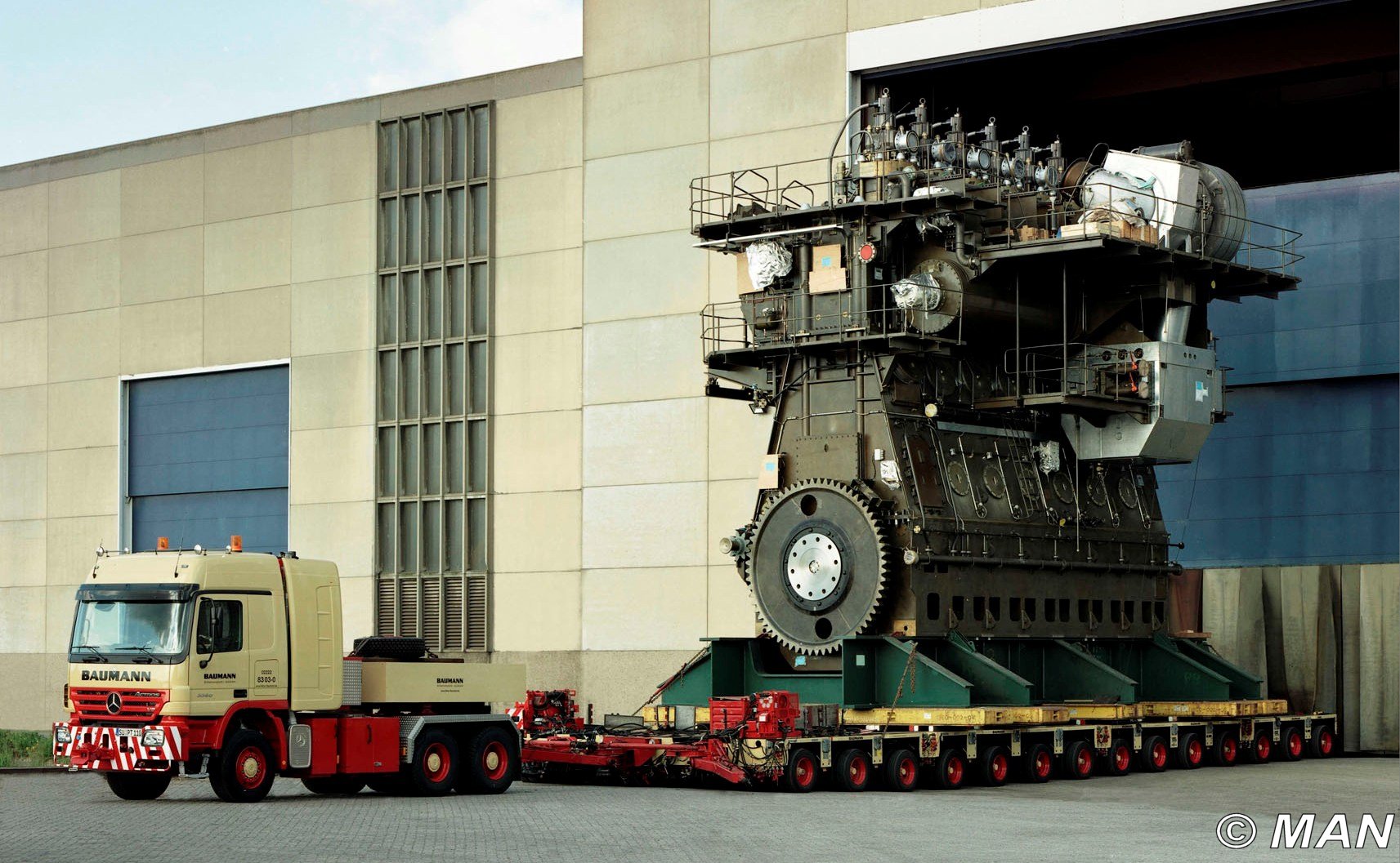 erreichen die größten Containerschiffe der Welt mit ihm bei Leistungen bis zu 74.000 kW (100.000 PS) Wirkungsgrade von weit über 40 Prozent. Inzwischen fahren Sie sogar etwas langsamer, um Sprit zu