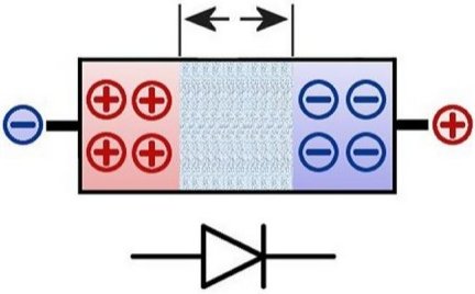 Aquí el voltaje actúa en la dirección de avance. El polo positivo agarra al extremo de la parte dopada p y el polo negativo agarra al de la parte dopada n. El símbolo del circuito bajo se orienta básicamente en la posición de