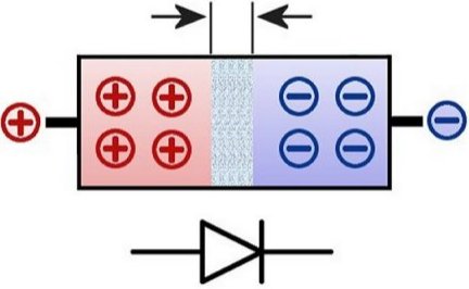 Aquí puede ver el esquema de un diodo típico. Consiste en una llamada p- y una capa n-dopada. Por el momento, el dopaje debe explicarse primero como 'impureza'. Se dibuja una capa de barrera entre las capas. Se