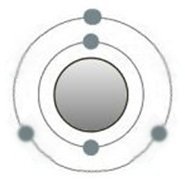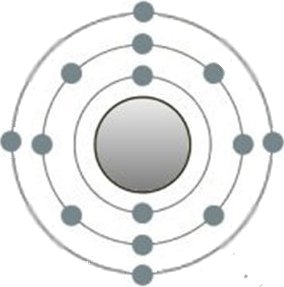 Esta es la estructura del átomo de silicio, que pertenece al grupo de los metales. Sus 4 electrones en la capa más externa son típicos. Si se junta más de un átomo de silicio, se produce el llamado enlace metálico en