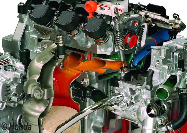 de encendido individuales con sensor en el volante, los árboles de levas ajustables con balancines de rodillos y el sofisticado sistema de escape con válvulas controlables.